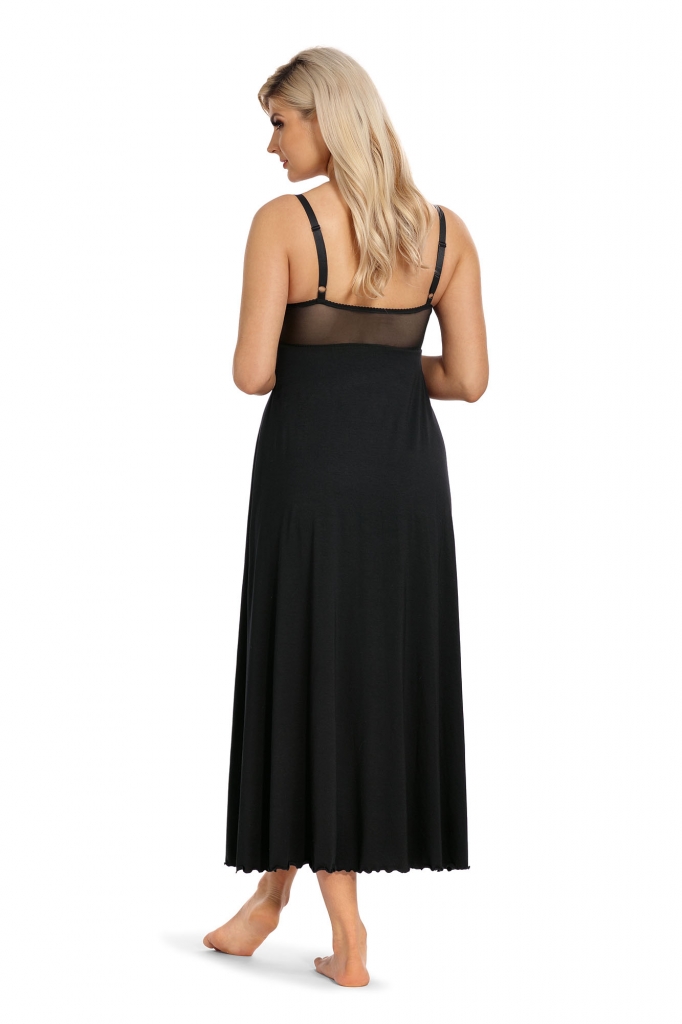 Długa koszulka z miękkimi miseczkami na fiszbinach. Model przeznaczony dla Pań hojniej obdarzonych przez naturę. Ramiączka regulowane, nieodpinane. Dół koszulki rozkloszowany.